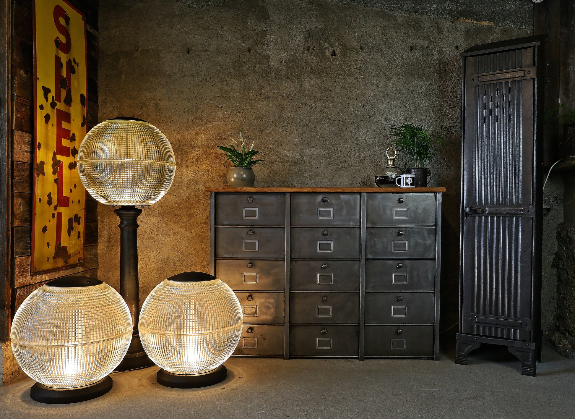 Holophane Stehleuchte, Lampe, Stehlampe auf Gussfuss